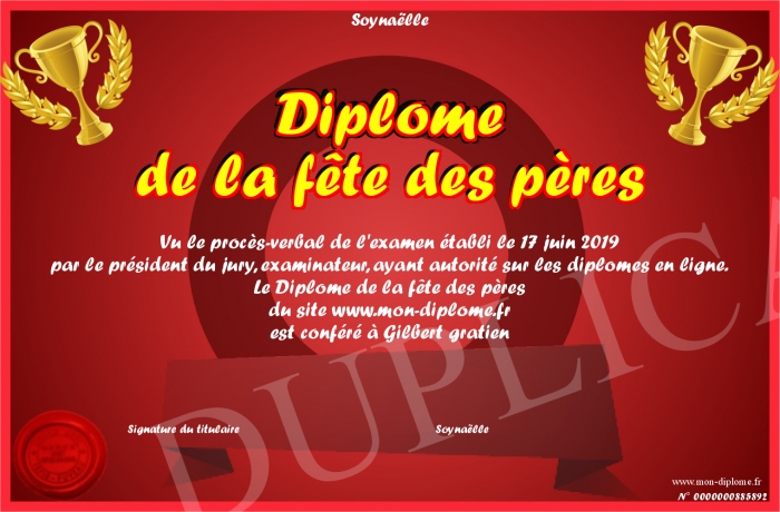 Envoyez par email votre Diplôme de la fête des pères personalisé