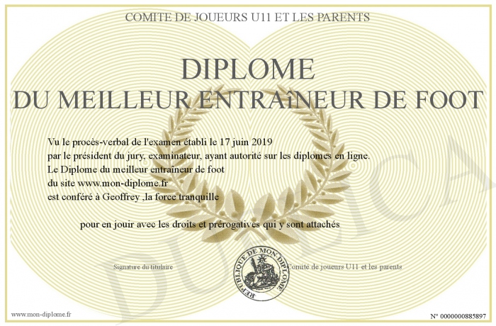 Envoyez par email votre Diplôme du meilleur entraîneur de foot personalisé