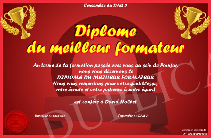 Envoyez par email votre Diplôme du meilleur formateur personalisé
