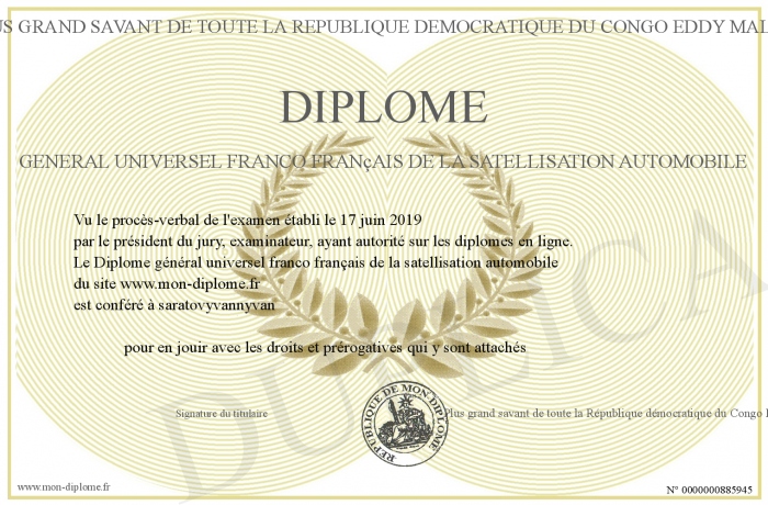 Envoyez par email votre Diplôme général universel franco français de la satellisation automobile personalisé