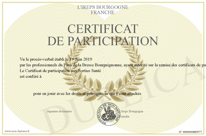 Envoyez par email votre Certificat de Participation personalisé