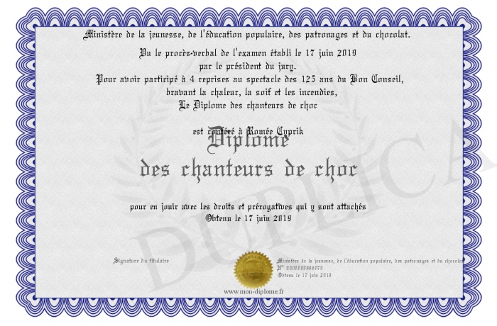 Envoyez par email votre Diplôme des chanteurs de choc personalisé