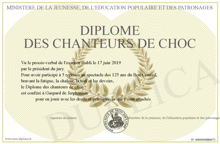 Envoyez par email votre Diplôme des chanteurs de choc personalisé
