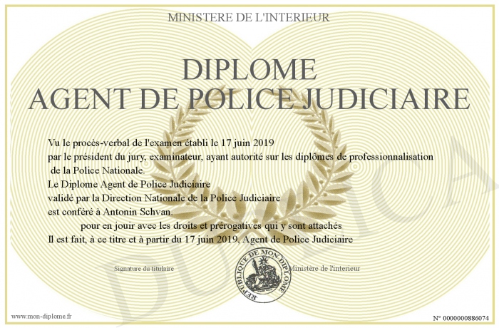 Envoyez par email votre Diplôme Agent de Police Judiciaire personalisé
