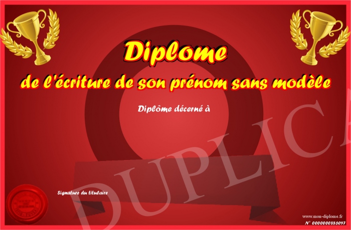 Envoyez par email votre Diplôme de l'écriture de son prénom sans modèle personalisé