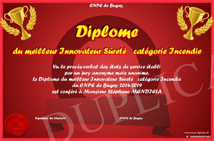 Envoyez par email votre Diplome du meilleur Innovateur Sûreté catégorie Incendie personalisé