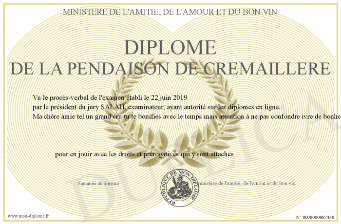Envoyez par email votre Diplôme de la pendaison de crémaillère personalisé
