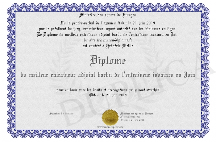 Envoyez par email votre Diplôme du meilleur entraîneur adjoint barbu de l'entraîneur invaincu en Juin personalisé