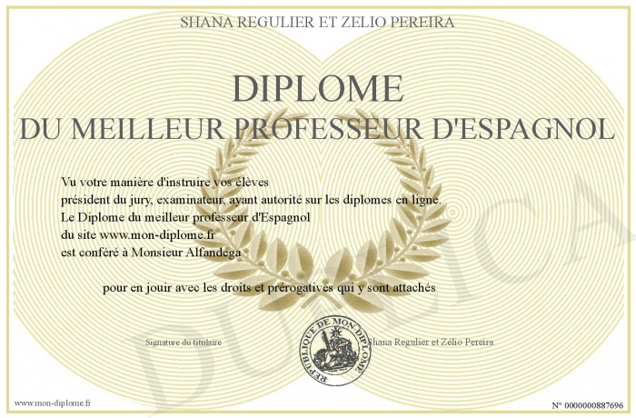 Envoyez par email votre Diplôme du meilleur professeur d'Espagnol personalisé