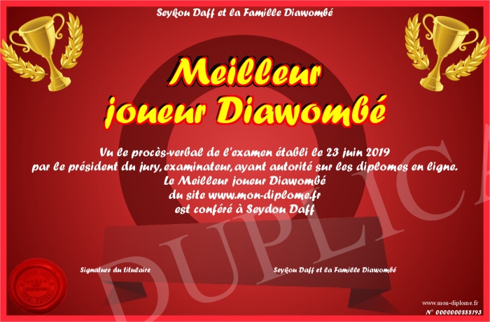 Envoyez par email votre Meilleur joueur Diawombé personalisé