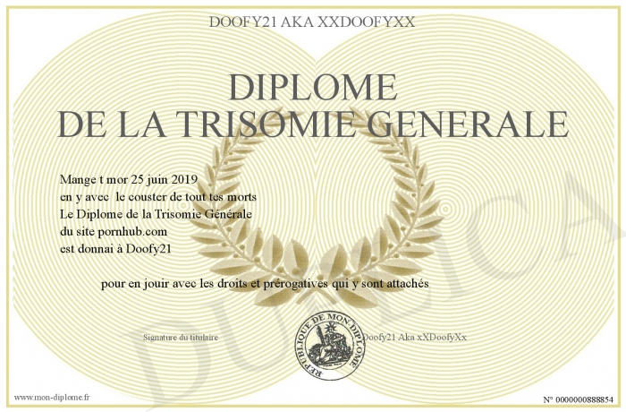 Envoyez par email votre Diplome de la Trisomie Générale personalisé