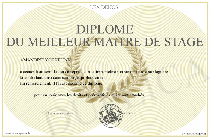 Envoyez par email votre Diplôme du meilleur maître de stage personalisé