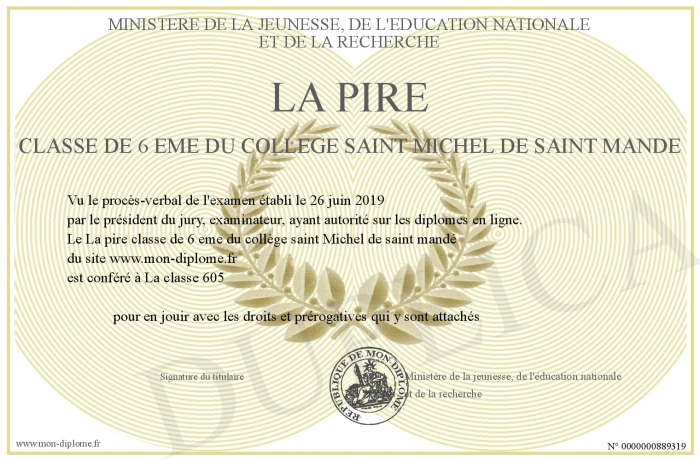 Envoyez par email votre La pire classe de 6 eme du collège saint Michel de saint mandé personalisé