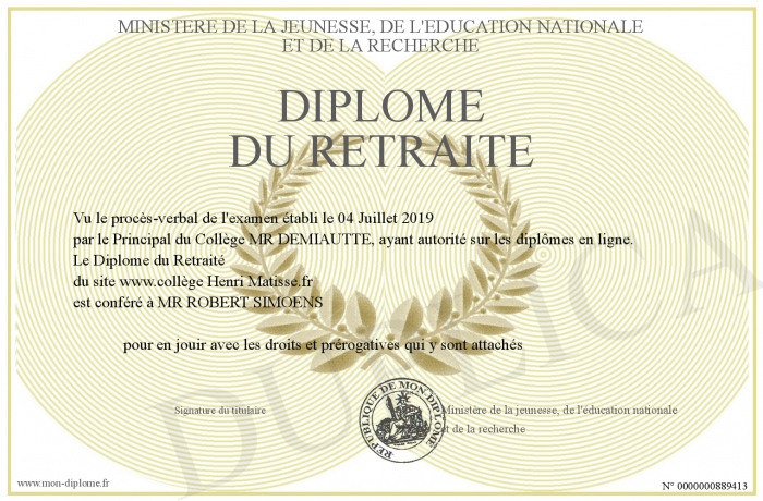Envoyez par email votre Diplôme du Retraité personalisé