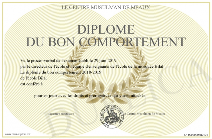 Envoyez par email votre Diplôme du bon comportement personalisé
