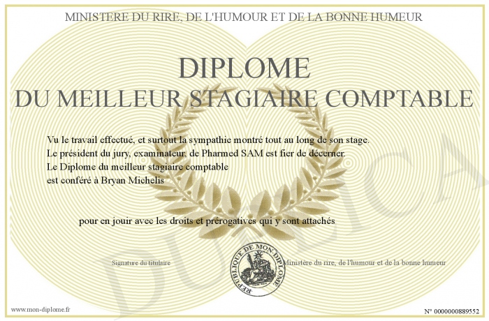Envoyez par email votre Diplôme du meilleur stagiaire comptable personalisé