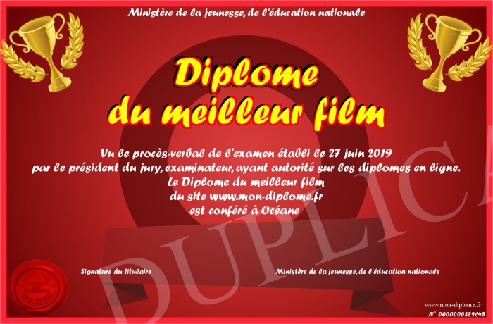 Envoyez par email votre Diplôme du meilleur film personalisé