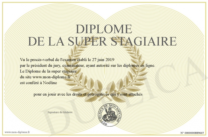 Envoyez par email votre Diplôme de la super stagiaire personalisé