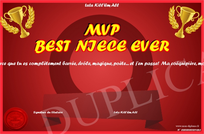Envoyez par email votre MVP BEST NIECE EVER personalisé