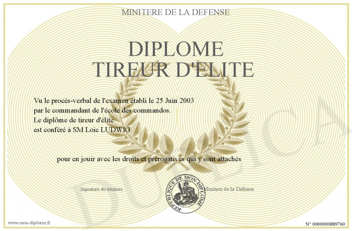 Envoyez par email votre Diplôme tireur d'elite personalisé