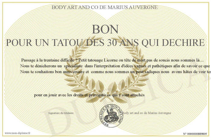 Envoyez par email votre bon pour un Tatou des 30 ans qui déchire personalisé