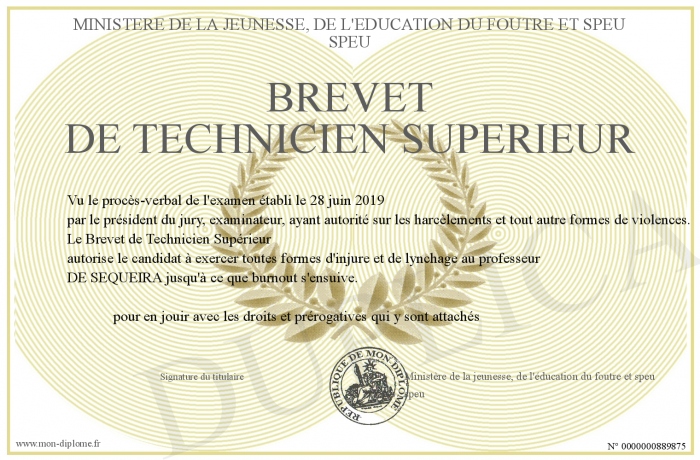 Envoyez par email votre Brevet de Technicien Supérieur personalisé