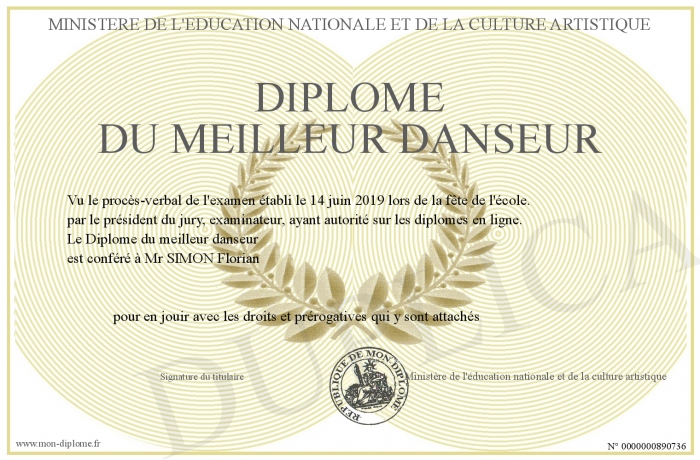 Envoyez par email votre Diplôme du meilleur danseur personalisé