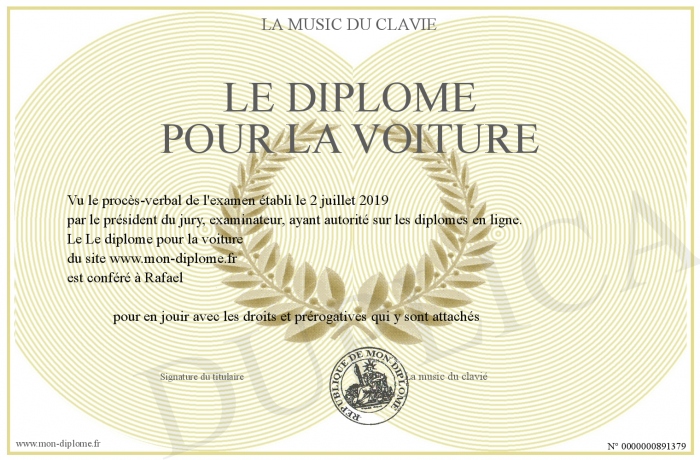 Envoyez par email votre Le diplôme pour la voiture personalisé