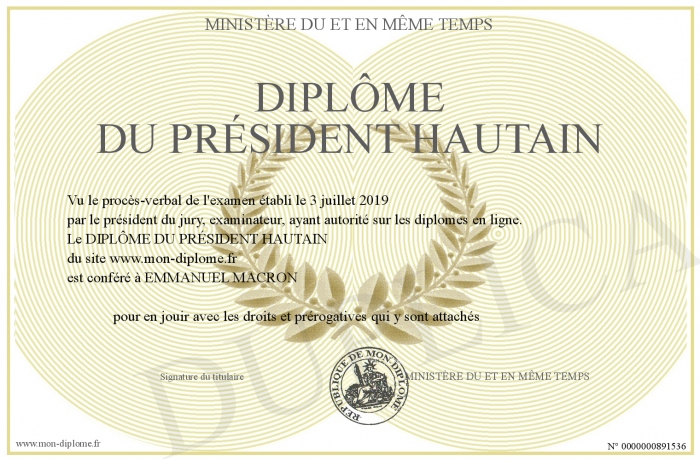 Envoyez par email votre DIPLÔME DU PRÉSIDENT HAUTAIN personalisé