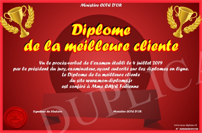 Envoyez par email votre Diplôme de la meilleure cliente personalisé