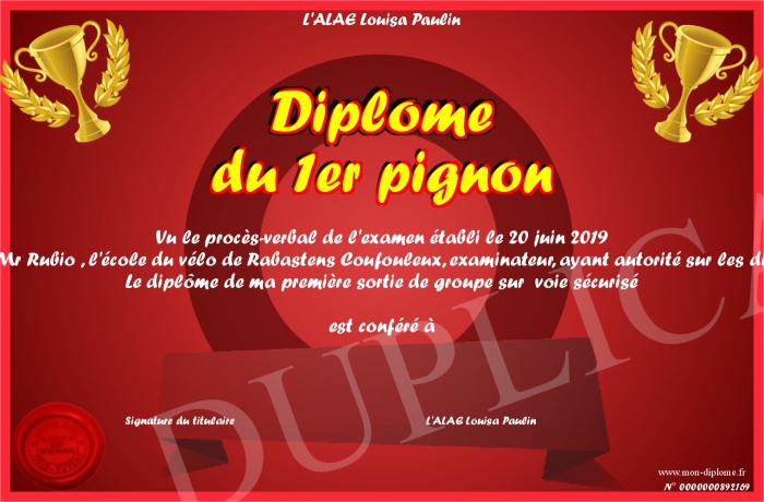 Envoyez par email votre Diplôme du 1er pignon personalisé