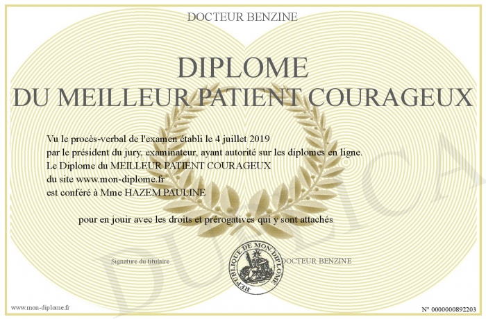 Envoyez par email votre Diplôme du MEILLEUR PATIENT COURAGEUX personalisé