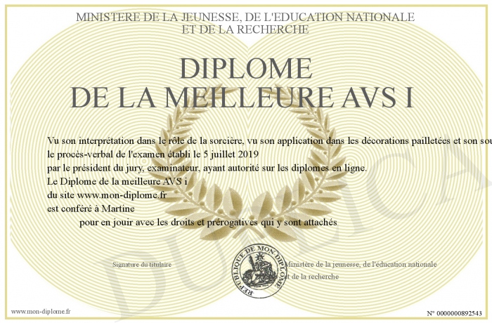 Envoyez par email votre Diplôme de la meilleure AVS i personalisé
