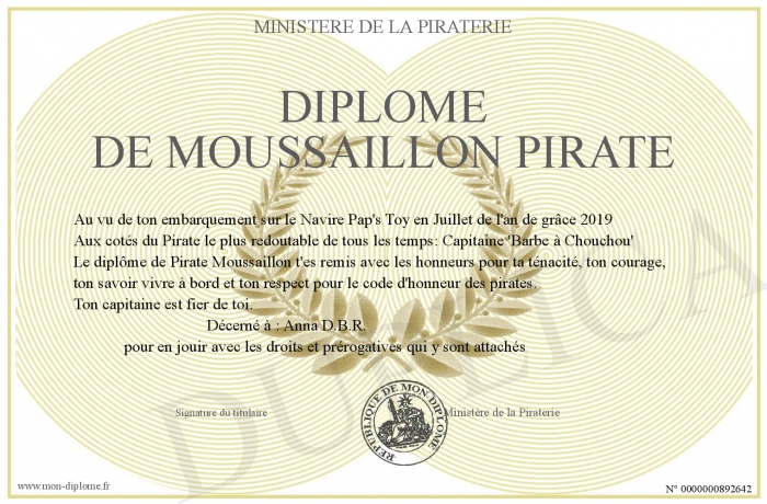Envoyez par email votre Diplôme de Moussaillon Pirate personalisé
