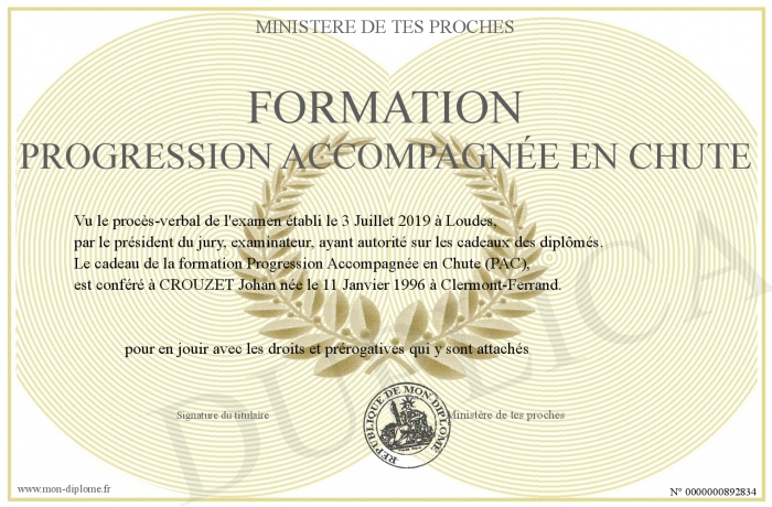 Envoyez par email votre FORMATION PROGRESSION ACCOMPAGNÉE EN CHUTE personalisé