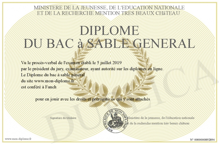 Envoyez par email votre Diplôme du bac à sable général personalisé