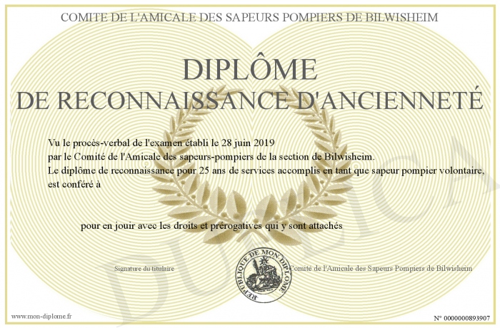 Envoyez par email votre DiplÔme de reconnaissance d'AnciennetÉ personalisé