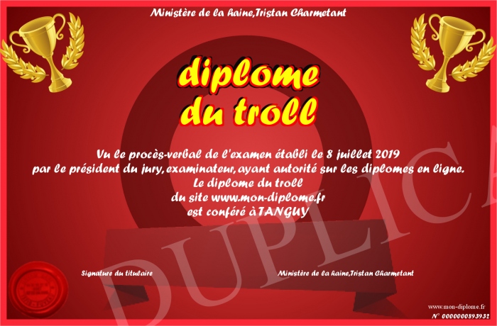 envoyé par le Ministère de la haine, Tristan Charmetant !