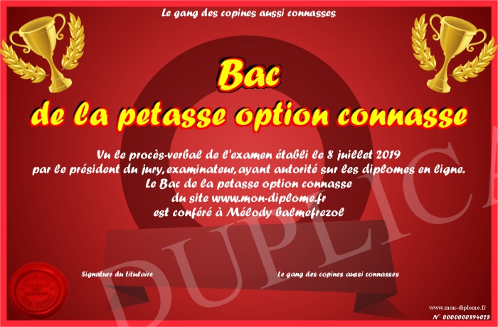 Envoyez par email votre Bac de la petasse option connasse personalisé