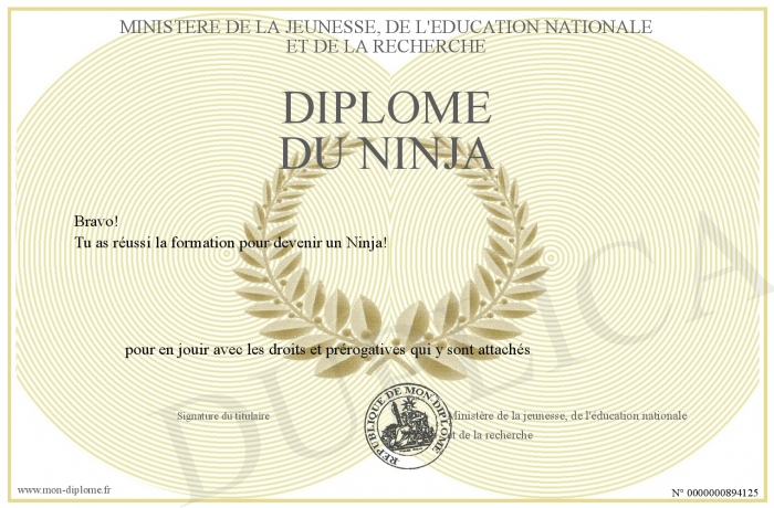 Envoyez par email votre Diplôme du NINJA personalisé