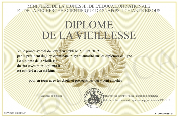 Envoyez par email votre diplome de la vieillesse personalisé