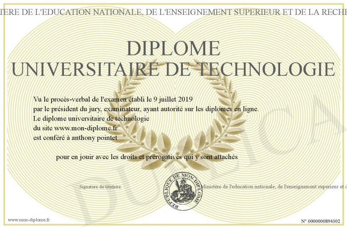 Envoyez par email votre diplome universitaire de technologie personalisé