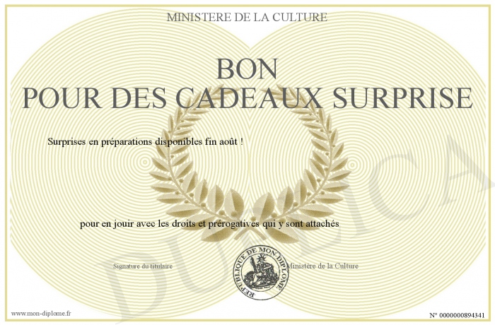 Envoyez par email votre Bon pour des cadeaux surprise personalisé