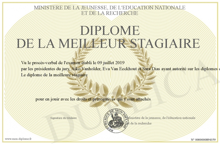 Envoyez par email votre Diplôme de la meilleur stagiaire personalisé
