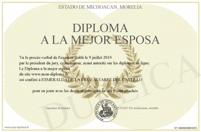 Envoyez par email votre Diploma a la mejor esposa personalisé