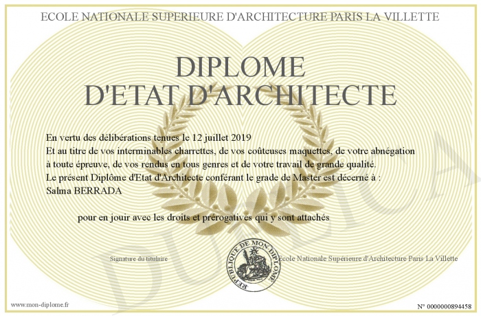 Envoyez par email votre Diplome d'etat d'architecte personalisé