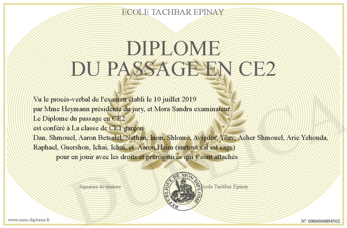 Envoyez par email votre Diplôme du passage en CE2 personalisé