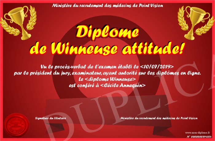 Envoyez par email votre Diplôme de Winneuse attitude! personalisé
