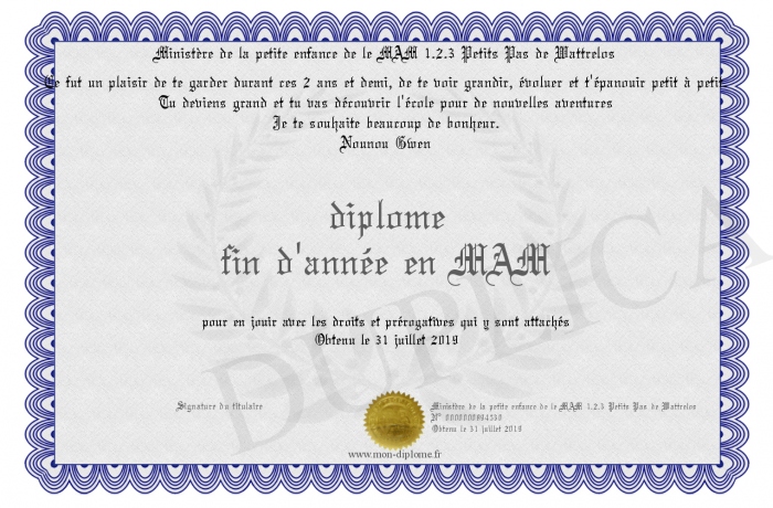 Envoyez par email votre diplome fin d'année en MAM personalisé