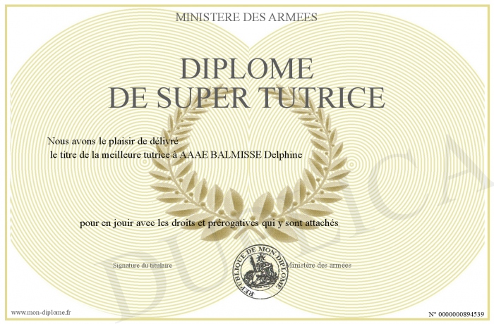 Envoyez par email votre Diplôme de super tutrice personalisé